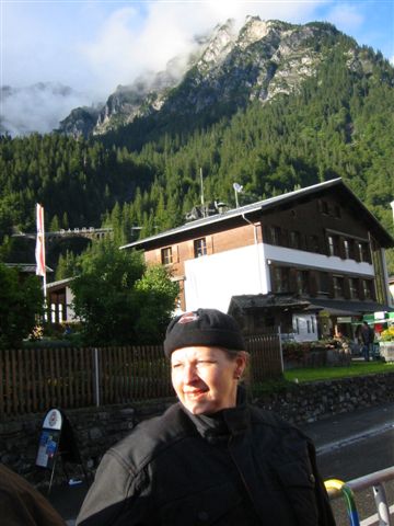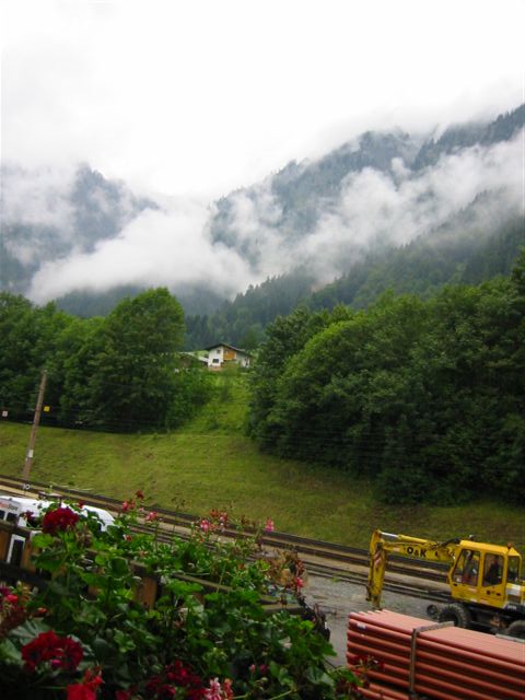 Am Samstag war das Wetter noch gleich besch..........! Was tun????? Um 16.oo Uhr dann Aufbruch Richtung Klösterle mit dem Linienbus. Der Blick in die Berge, der Arlberg hat Schnee. In Klösterle angekommen, Fans ohne Ende und der Regen läuft zur Hochform auf. Bis ca. 20.oo Uhr hielten wir Regen und Kälte aus, dann hatten wir die Faxen dicke. Rein ins Taxi und ab ins Paradies, wo wir noch ein paar super Stunden verlebten. So nach und nach trudelten dann auch die Anderen, die ebenfalls keine Konzertkarten gekauft hatten, ein. Bei 7° und Regen machts einfach keinen Spaß, sich im Freien aufzuhalten.