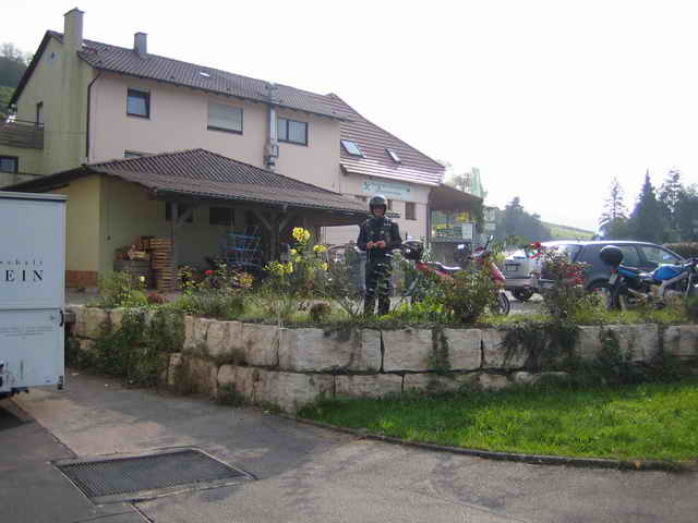 Kaffee für den Lenker und Benzin für den “Stänker“ auf der B10 Richtung Vaihingen Enz. Bietigheim, Pleidesheim, Murr: Mein Gott, wo bleibt das schöne Wetter nur!