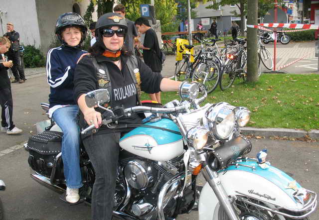 Der Part, den Rulaman dazu beiträgt, gewinnt Jahr für Jahr mehr Freunde und ist zwischenzeitlich zur Haupt-Attraktion geworden. Harley-Rundfahrten für Jung und Alt. Gegen einen Spendenbetrag in die Gemeindekasse, konnte man als Sozius mit routinierten Bikern und Bikerinnen eine Runde durch Tübingens Südstadt fahren.