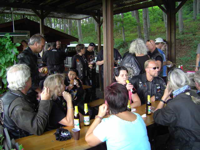 Gestärkt bretterten wir weiter auf der B19 bis Fambach. Dann über Landstrassen nach Trusetal und der Sonne entgegen zum „Kleinen Inselberg“. Auch Biker-innen müssen mal essen, trinken, trinken, trinken und schlafen. Der kleine Inselberg bietet hierzu angenehmes und Sehenswertes an.