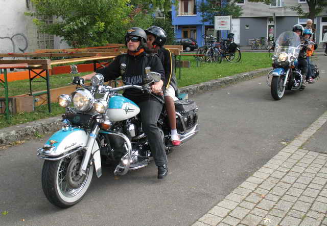 Der Part, den Rulaman dazu beiträgt, gewinnt Jahr für Jahr mehr Freunde und ist zwischenzeitlich zur Haupt-Attraktion geworden. Harley-Rundfahrten für Jung und Alt. Gegen einen Spendenbetrag in die Gemeindekasse, konnte man als Sozius mit routinierten Bikern und Bikerinnen eine Runde durch Tübingens Südstadt fahren.