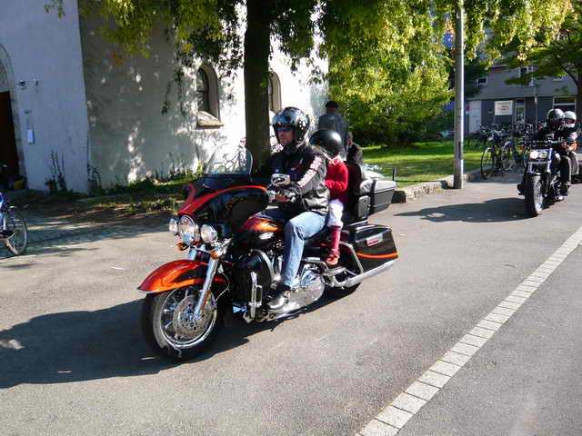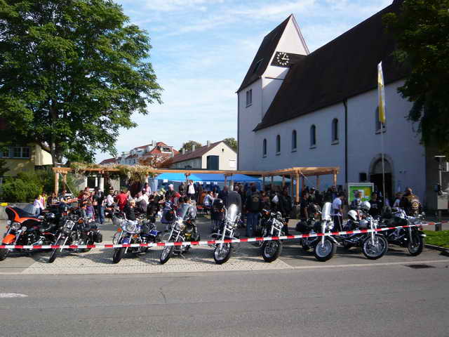Da unsere Harley-Rundfahrten in den letzten Jahren zur Haupt-Attraktion geworden sind, stand außer Frage, auch dieses Mal wieder mit dabei zu sein. Obwohl zahlreiche Mitglieder mit ihren Bikes auf der gleichzeitig am Gardasee stattfindenden HOG-Rallye unterwegs waren, trafen sich dennoch 10 Fahrer am vereinbarten Treffpunkt. Nach kurzer Bike-Segnung wurde dann unter spätsommerlicher Sonne, zweieinhalb Stunden, Runde für Runde gedreht.