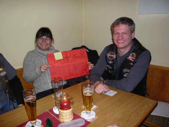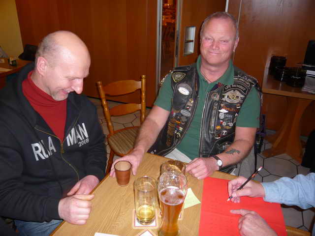 Gewürfelt wurde in 4 Gruppen. Ausgespielt wurden 30 kleine Mutscheln, bevor Vice Wolf, Dietmar, Richard und Gerd als Teilnehmer der Finalrunde feststanden. Hier ging es nun richtig zur Sache. Im Kampf um die köstliche, achtzackige Riesenmutschel hatte jeder Endspielteilnehmer seine eigene Strategie. Ob Zauberformeln oder auf die Würfel pusten, geholfen hat es nur einem, wobei wir jetzt wieder bei Richie wären.