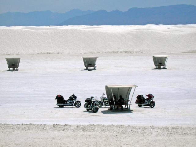 Die nächsten 2 Tage verbringen wir teilweise ungeplant im Big Bend National-Park (Rolf hat einen Nagel im Reifen). Dieser landschaftlich wunderschöne Park, sehr südlich gelegen, wird nur von wenigen Touristen besucht. Auf dem Texas Mountain Trail, entlang der Guadalupe Mountains mit dem „El Capitain“, der höchsten Erhebung in Texas (8.752 feet), erreichen wir Carlsbad. White Sand National Monument ist der nächste Höhepunkt, ehe wir in Las Cruces Quartier beziehen. Am nächsten Tag fahren wir über den Emory-Pass, 8.228 feet, durch die San Matteo Mountains, das Homeland der Warm Spring Apachen. Wir sehen Santa Rita, die älteste Mine der USA.