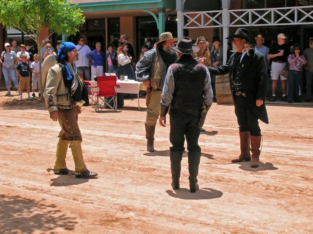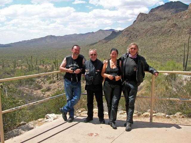 Leider hat Rolf wieder einen Nagel im Reifen „gesammelt“, so dass wir in Silver City einen längeren Stopp einlegen müssen. Ein netter Schrauber bringt einen Schlauch im neuen kaputten Reifen an und so können wir die Fahrt bei kaltem Wind und leichtem Regen durch die Bear Mountains über Alpine (Arizona) bis Hannagan Meadows fortsetzen. Diese urige Lodge hat uns schon im vergangenen Jahr sehr gut gefallen. Am nächsten Morgen geht die Tour weiter, durch die White Mountains Apachen Reservation, über Show Low, Globe. Es gewittert und regnet, aber es ist nicht kalt. Durch den Salt River Canyon – sehr beeindruckend – vorbei an den Santa Teresa Mountains erreichen wir Willcox. Das Chiricahua National-Monument mit seinen atemberaubenden Felsformationen ist unser nächster Halt. Auf unserem Weg nach Tombstone, wo wir die nächsten Tage die Wyatt Earp Days erleben werden, erwischt uns wieder ein kräftiger Schauer, der fast einem Tornado ähnelt.