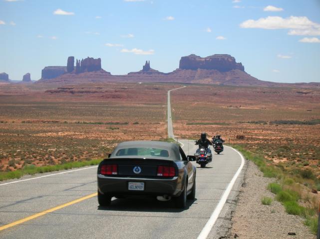 Die Fahrt führt uns auf dem Highway 12, entlang des Grand Staircase Escalante National Monuments, bis nach Torrey. Von hier aus erkunden wir den Capital Reef National Park. Hier ist besonders die Capital Gorge sehenswert. Leider ist diese Schlucht nur auf einer Schotterstraße zu befahren was Rolf nicht davon abhielt. Auf dem wunderschönen Highway 24 geht es weiter über Hot Springs, durch die Glen Canyon Recreation Area ins Monument Valley, wo wir im historischen Hotel „Gouldings Lodge“ übernachten. Ein Erlebnis der besonderen Art. Axel, Peter und ich machen am nächsten Tag eine von einem Indianer geführte Tour ins Monument Valley hinein. Ein einmaliges Erlebnis! Doch es geht weiter, durch die Ute Mountains (Ute Peak 9978 feet) bis Cortez. Der Mesa Verde National Park mit Cliff Palace und Balcony House sind die weiteren Höhepunkte unserer Tour. An diesem Tag übernachten wir in Durango, wo sich die Wege der Gruppe für die letzten Tage trennen: Axel, Peter und Volker fahren an einem Tag zurück nach Greeley (466 km), um dort Zeit zum Einkaufen zu haben. Rolf und Uschi fahren über den Wolf Creek Pass (10550 feet), durch den Rio Grande National Forest nach Salida, ein kleines Städtchen mit einer sehenswerten Altstadt.
