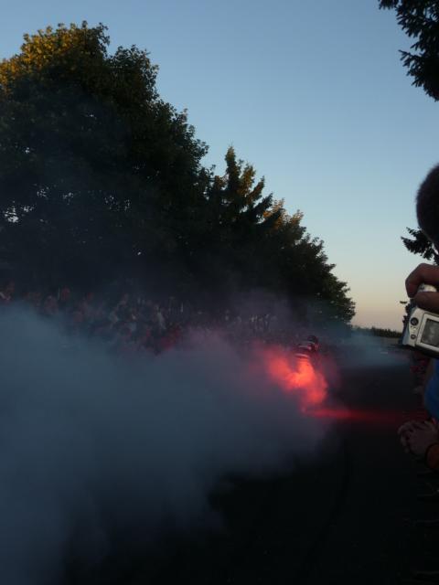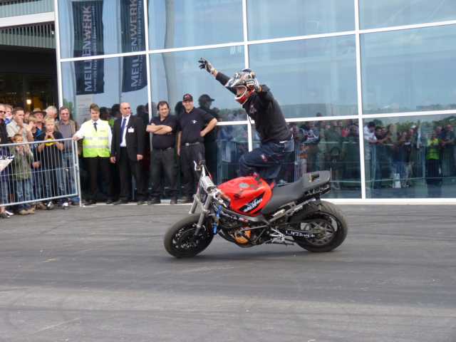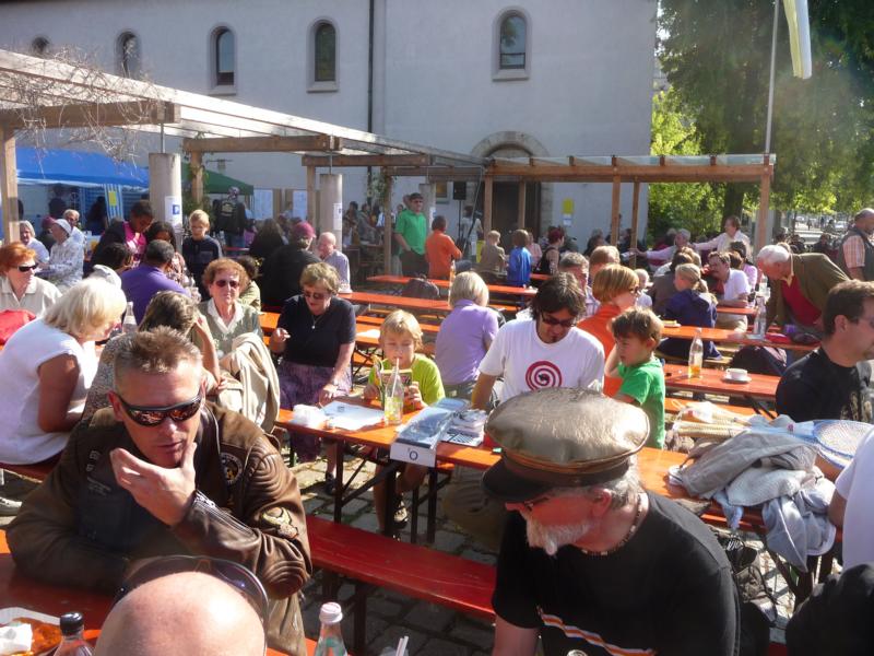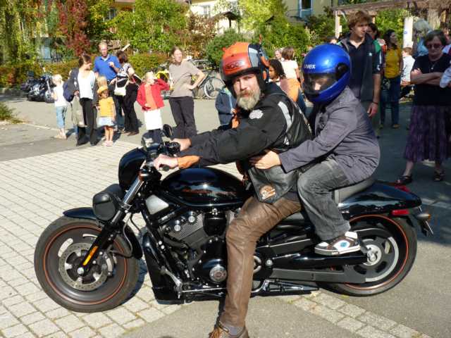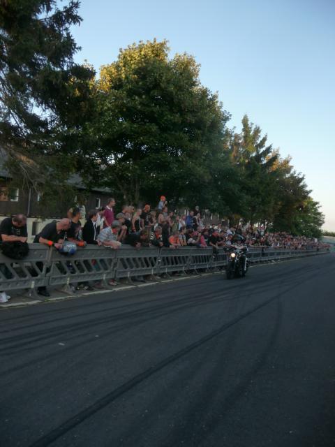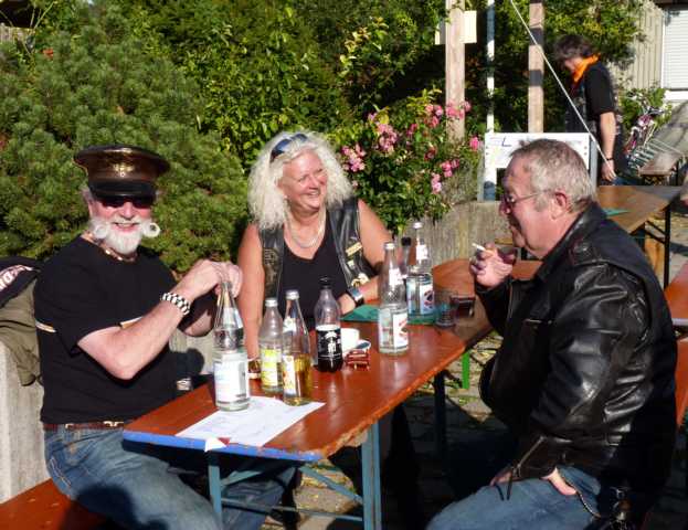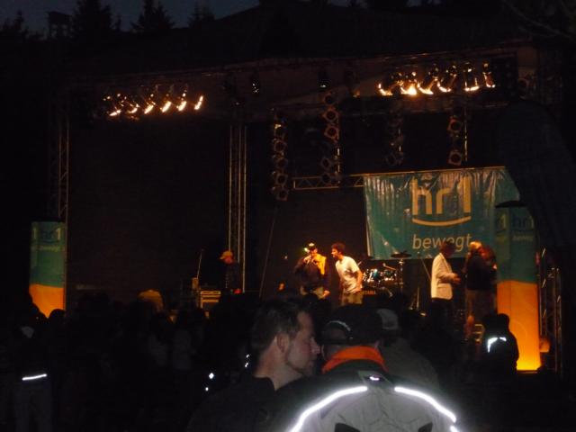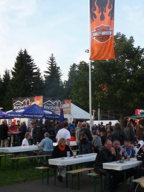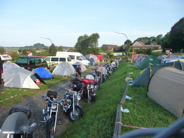 Der Regen der Nacht hatte sich zumindest um Leonberg bereits verzogen und die Wetteraussichten für das Wochenende ließen hoffen. Bis Ludwigsburg Nord nutzten wir die A81 um anschließend fast bis zum Ziel der B27 zu folgen. Während für unsereins, die Geplagten des Großraumes Stuttgart, die Bundesstraße 27 im Odenwald zwischen Mosbach und Walldürn bereits eine Wohltat ist, ist dieselbige bei Hammelburg, Bad Brückenau eine Offenbarung. Gut ausgebaute Strassen die nicht nur gerade zum Horizont führen, kaum Verkehr am Freitagnachmittag, KM-langes fahren ohne Gegenverkehr durch Wälder und Wiesen erfreuen des Biker´s Herz. So kamen wir gutgelaunt nach einigen Zigarettenpäuschen in Gersfeld an. Axel und Roland gingen auf Zimmersuche, während Wolf seinen reservierten Zeltplatz aufsuchte um seine 1-Raum-Wohnung für die folgenden Nächte aufzuschlagen. Das Zelt stand noch nicht richtig, da donnerten die beiden Kollegen schon am Platz vorbei zur Wasserkuppe.