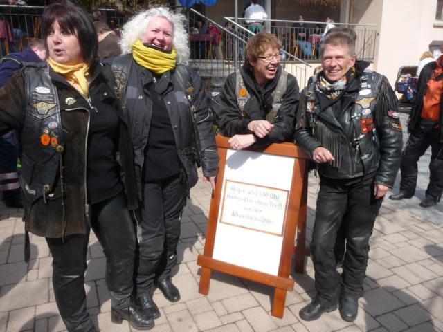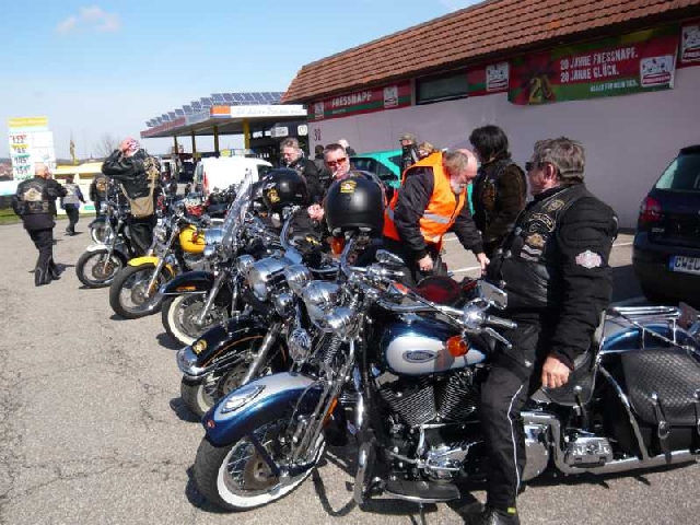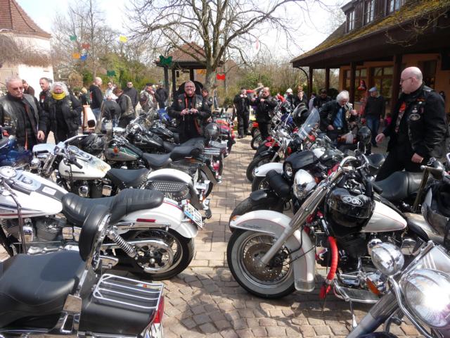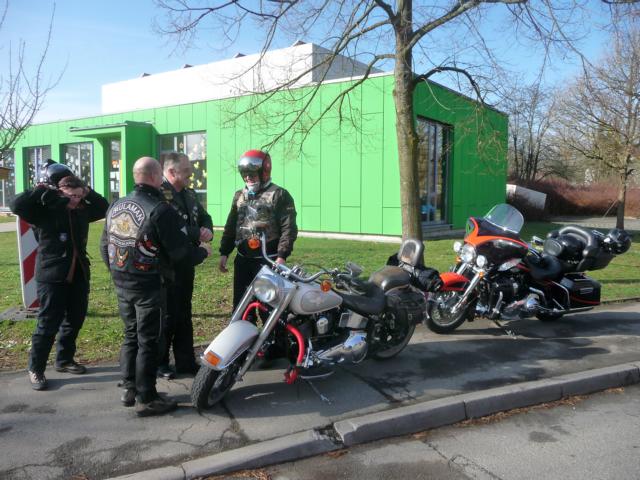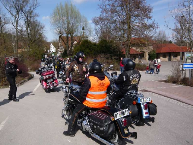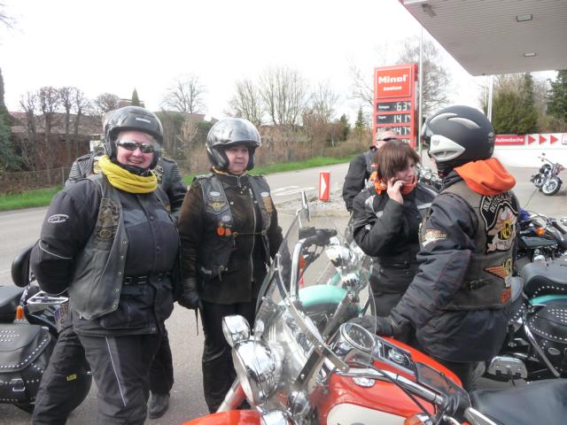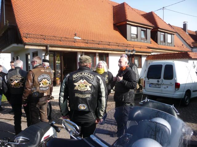 Kühle, frische, teilsfrostige Temperaturen herrschten vor, als ca. 30 RULAMANen am Morgen des Karfreitags ihr Bike aus der Behausung schieben / fahren. Während die Member von der Alb mit Minustemperaturen zu kämpfen hatten, hatten die Kinder der Großstadt, bzw. Großstadtnähe, immerhin schon ein oder zwei Plusgrade für Ihre Anreise zum Treffpunkt beim Chief. Vier, in Worten: 4, selbstfahrende Ladies of Harley mischten sich unter die Meute.