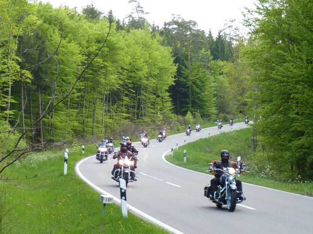 Wellness auf 2 Rädern war das vom Roadcaptain ausgegebene Motto zur Pfingstsonntags-Tour. Und alles passte heute zusammen. Knapp 30 Gäste und Mitglieder trafen sich pünktlich am Startpunkt Südbahnhof. Ziel war das von Moor und Ried geprägte Oberschwaben mit den Kurorten wieBad Buchau, Bad Schussenried, Bad Waldsee und Bad Saulgau. Das Museumsdorf Kürnbach war nach einer kurzen Kaffee-Pause in Riedlingen die erste Station. Hier scheint die Zeit stehen geblieben zu sein. Besser als in jeder Filmkulisse wird einem hier der dörfliche Alltag der letzten 2 Jahrhunderte nähergebracht. Relaxed ging es weiter zum Hofgut Elchenreute mit seinem herrlich bayrischen Biergarten.