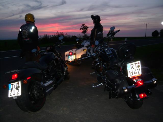 Für Samstag war nochmal schönes Wetter vorhergesagt, bevor dann irgendein Tief Herbststimmung bringen sollte. Völlig losgelöst von den Vorhersagen ließen es sich die RULAMANen gut gehen. Die einen machten Verwandtschaftsbesuche in Thüringen und waren über die schöne Landschaft überrascht, andere zogen vor, sich mit stark alkoholisierten Osteuropäern in ein Motorflugzeug (Cessna o.ä.) zu setzen und zu amüsieren (???) und dann gab es noch die Fraktion der Harleytreiber, welchen nix besseres einfiel, als die Wende in Oberhof am Rennsteig (siehe Vorjahr. Diesmal kannte man schon die wenigen Tanken, dafür suchte Mann umso intensiver nach einem Cafe mit lecker Thüringer Torte [1 Tortenstückchen = 1 Mittagessen (kcal)]).