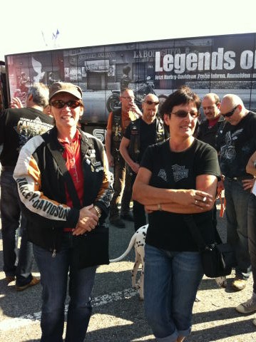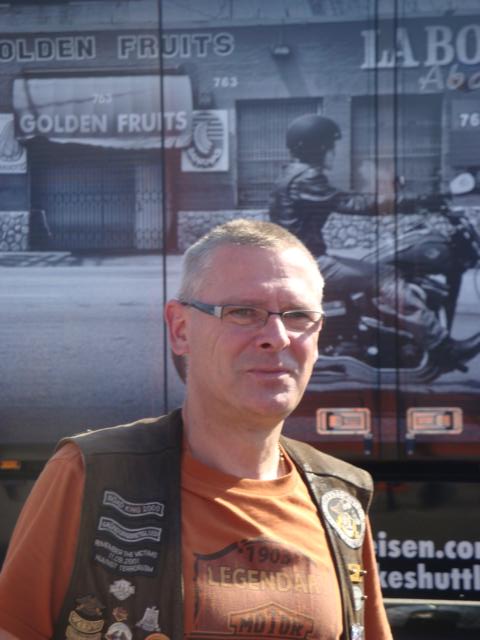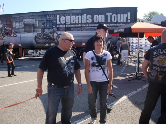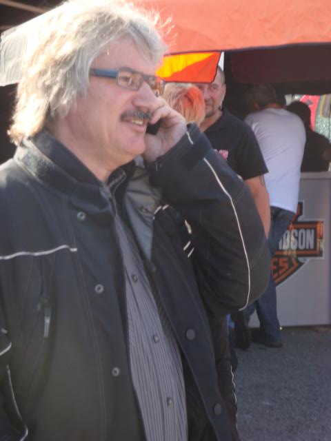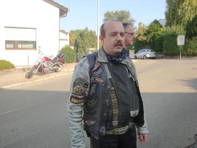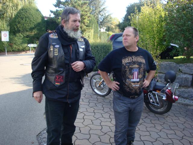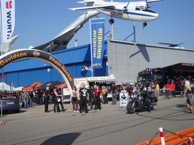 Die Familie von Klaus begrüßte uns recht herzlich und lud uns zum Kaffee ein. Auch ein alter Bekannter (ihr erkennt ihn sicherlich auf den Bildern) war mit von der Partie.Danach ging es los. Über Bietigheim, Besigheim und Lauffen fuhren wir durch das wunderschöne Kraichgau nach Sinsheim. Je näher wir nach Sinsheim kamen, desto mehr Harley-Fahrer waren auf den Straßen zu sehen.Auf dem Festgelände angekommen, machten beim Harley Demo-Ride Truck ein paar Member gleich eine Probefahrt klar.