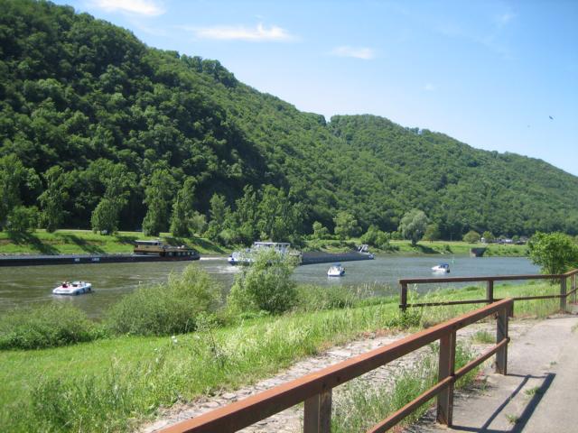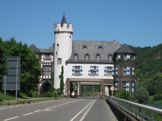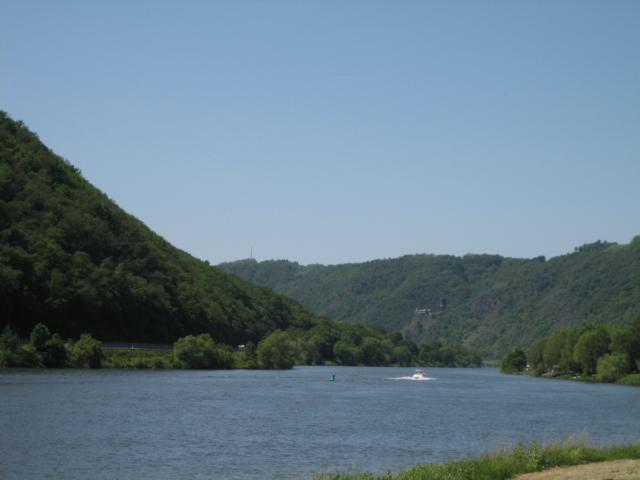 Hier wurde die weitere Fahrt auf der B 416 entlang der dortigen Weinorte Kobern-Gondorf, Lehmen, Hatzenport, Müden (dort befindet sich eine der mannigfaltigen Schleusen, die eine Beschiffung der Mosel bis nach Frankreich bzw. Luxemburg erst ermöglichen, siehe auch Foto), Pommern, Cochem, vorbei an Beilstein bis über die Moselbrücke nach Senheim durchgeführt und über die B 49 entlang der Mosel dann auf der anderen Uferseite die Rückfahrt angetreten.