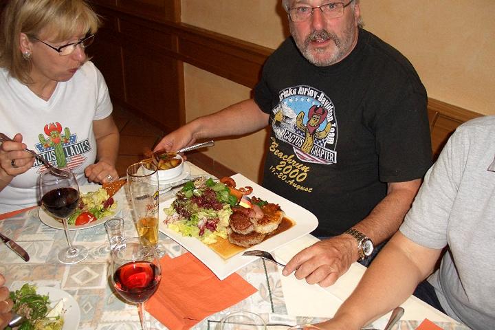 Dieses Jahr waren auch unsere Düsseldorfer Gäste Wolf, Helga, Lutz und Claudia vom Cactus Chapter undJokken, Inken vom Bridgwater InternationalChapter wieder bei der Tour im Ländle dabei. Nicht vergessen darf man auch Gitti und Chrissly.Sie alle haben auf jeden Fall den Preis für die weiteste Anfahrt und als treueste Tour im Lände Fahrer verdient. So oft, wie sie schon dabei waren, haben sie bestimmt Maultaschen und Spätzle in den Packtaschen auf ihrer Rückreise dabei.