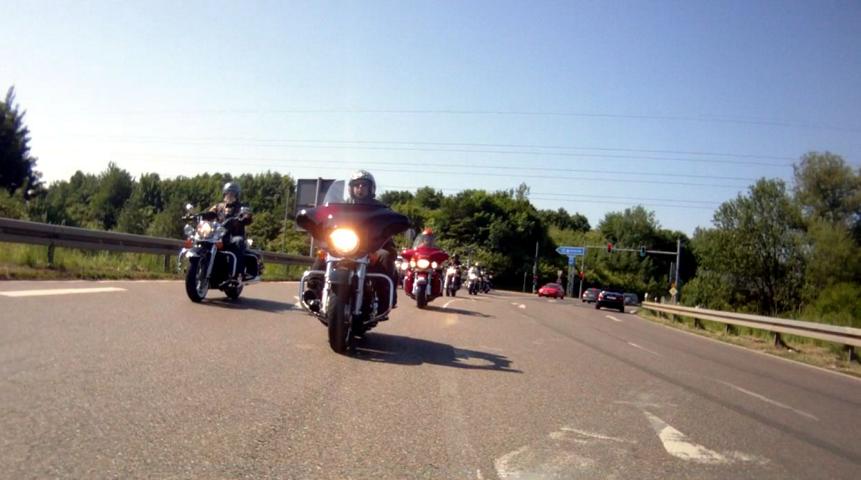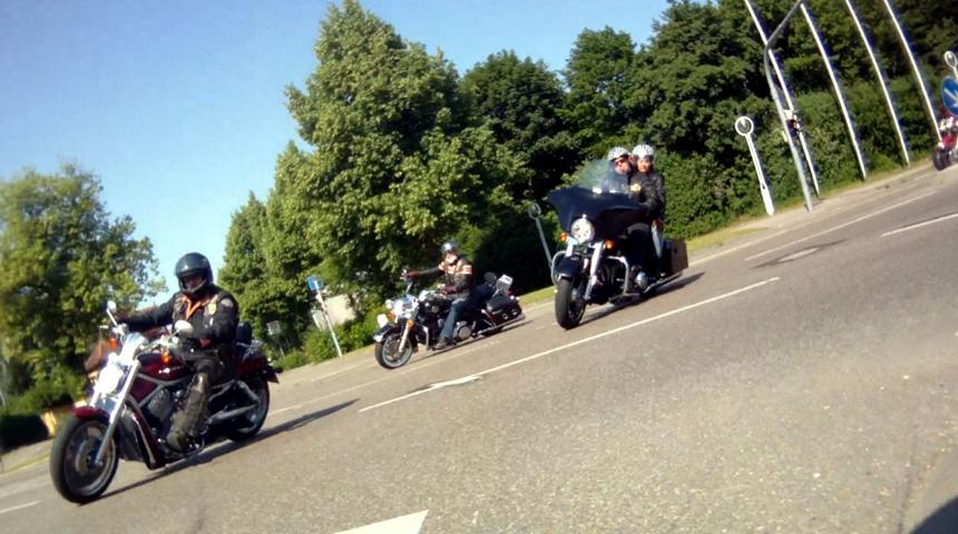 Leider streikte die Maschine von Heinz. Zickte einfach rum, obwohl sie keine Frau war. Zum Glück ist Heinz Multi-Harley fähig. Kurz umdisponiert, Gudrun hinten draufgepackt und über die Autobahn nach Hause. Der große Teil der Rulas war schon über die Landstrasse vorausgefahren. Unterwegs wurde noch die Maschine von Klaus geknuscht - von einem Mercedes.