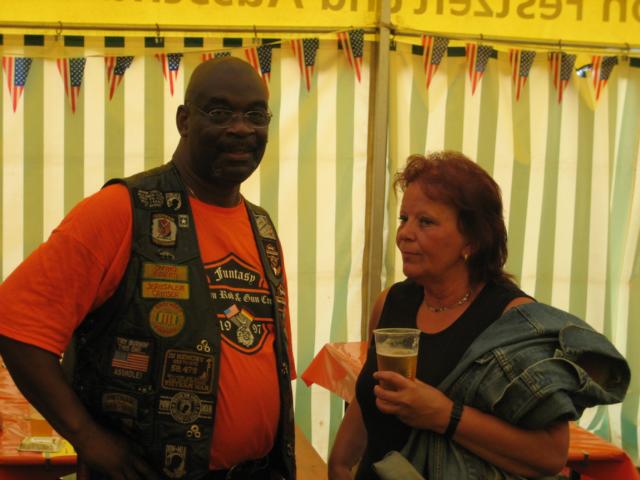 Dies tat der Stimmung keinerlei Abbruch, auch als beim letzten Schauer es teilweise in das Festzelt reinregnete und Robert konnte Mitglieder vom Tool Town-, Fulda Rhön- , Einstein-, Rhein Valley Legion-, Rhein-Neckar-, RULAMAN Chapter, American Steel Griesheim, Harley Club Airport Frankfurt und die HD Freunde 20 Limited aus Hanau begrüßen.