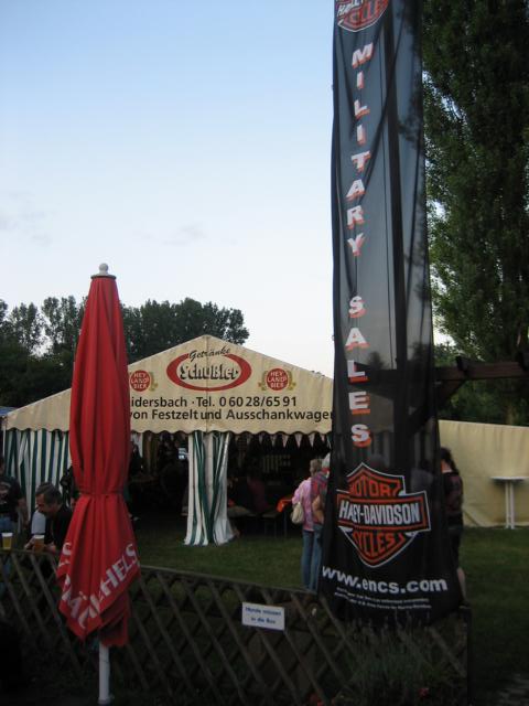 Das Sommerfest fand, wie immer in Grossauheim auf dem Gelände bzw. innerhalb des Vereinsgebäudes des PS SV Hanau statt. Ein idealer Platz, da das Gelände weitläufig ist und genügen Raum für Festzelt, BBC Versorgungseinheiten und Getränkestand sowie Cocktailbar vorhanden ist. Die Campingfreunde unter den HD Fahrern kommen ebenfalls voll auf ihre Kosten, wie auch die „verweichlichten Hotelschnarcher“ (wir gehören auch dazu), da in unmittelbarer Nähe gute Hotels vorhanden sind.