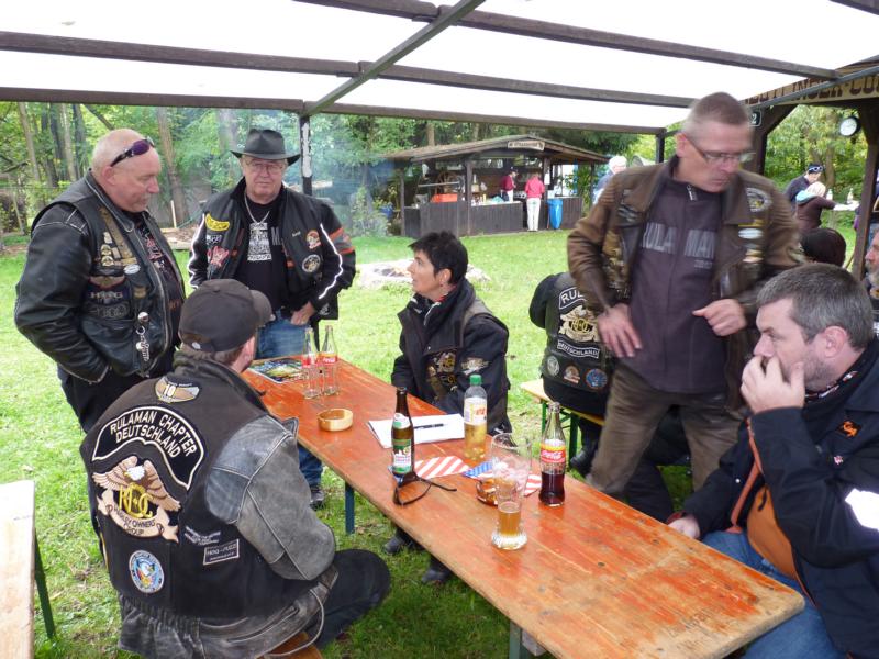 Doch erstmal der Reihe nach: Rechtzeitig zum Start des Hufeisenwerfens kehrte RC Rainer mit 12 Harleys im Rücken von einer zweistündigen Eröffnungsrunde zurück. Der alljährliche Event am Tag der deutschen Einheit auf dem Gelände des Reutlinger Country Clubs konnte beginnen. Gestärkt durch ein hervorragendes Western-BBQ (Bratkartoffel und Steaks) begann die Disziplin der Frauen.