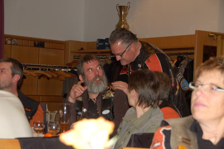 in Bezug auf den Dresscode des Abends war Horstmar´s Outfit perfekt. Oben Kutte, unten Krachlederne. Zünftig sollte es werden. Wenn man nun den Begriff „Country-Folk“, der von den Bikern neben der Rockmusik eine gern gehörte Musikrichtung ist, frei interpretiert, landen wir bei der Volksmusik.