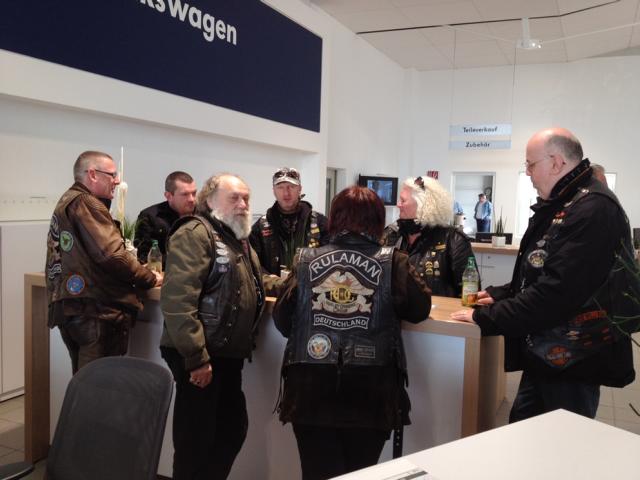 Als ich am Karfreitag das Ende des Regens abgewartet habe, habe ich um 9.00h unsere Bikes auf die Strasse gestellt. Kurz darauf tuckerte es schon und Roland kam mit kalten Händen vorgefahren. Kurz darauf war auch RC Rainer im Reisweg, stellte in optimistischer Hoffnung seine Maschine gut und gern 50 Meter entfernt ab. Diese Lücke werden ja die Biker, die noch kommen locker auffüllen - meinte er!