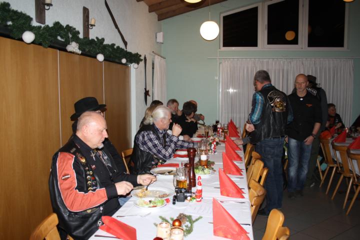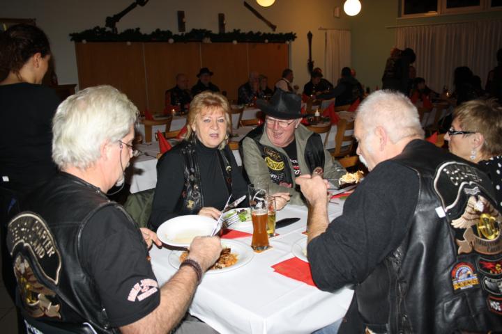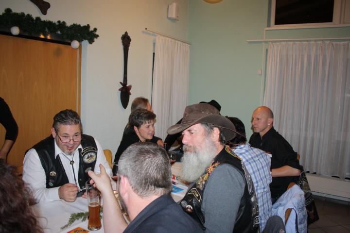 Nachdem Grudrun und Heinz die Weihnachtsfrau bzw. -mann für die Kinder gespielt hatten, hielt Heinz eine kurze Rede „zur Lage der Nation“. Besonders erwähnt wurde Pfingsten 2014. Zu diesem Termin feiern wir unser 20-jähriges Jubiläum zum Bestehen des Rulaman-Chapters. Bis dahin wird es noch viel Arbeit geben und Heinz hatte uns eine Vorstellung davon gegeben, was wir machen wollen.
