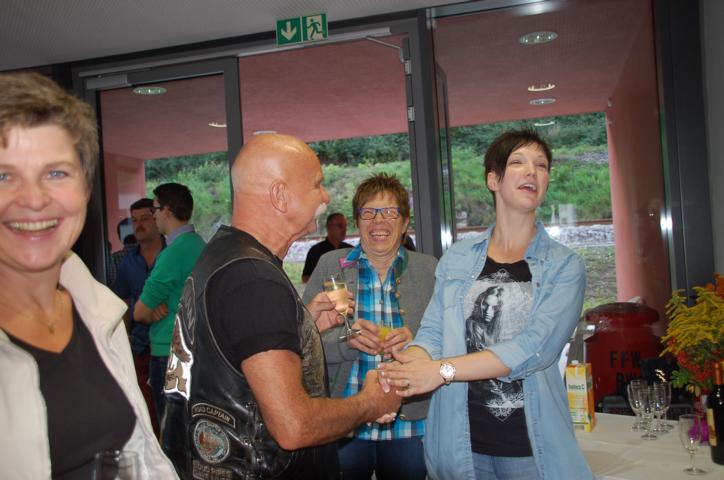 Nach einem lockeren Sektempfang ging es dann zum offiziellen Dinner. Die Speisen vom Buffet waren reichlich und lecker. Der Vice hatte auch seinen Sohn vorbei. Der war ganz scharf darauf, die vielen Fahrzeuge der Feuerwehr anzusehen und auch mal in einem zu sitzen. Auch Frank interessierte sich dafür. Bei einem Bierchen kam ich mit einem Mitglied der Feuerwehr ins Gespräch und er erzählte mir höchst interessante Details rund um Einsatzwagen, Rettungsleitern usw. Jetzt weiss ich, wo unter anderem meine Steuern hinfließen. So ein Einsatzfahrzeug kostet richtig viel Geld.