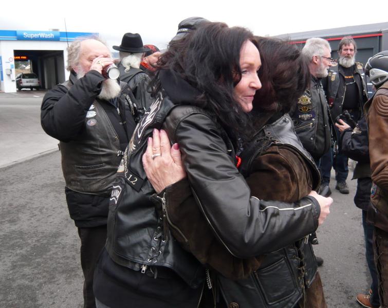 Der Bestatter gab mir wie vereinbart ein Zeichen und wir gingen aus der Halle an unsere Bikes, umrahmt von 44 Bikern startete ich, als die kleine Familiengruppe zu sehen war, den Motor. Und mit mir zeitgleich schrien die anderen 8 Big Twins in die endlose Stille. Als die Tochter und die Nichte mit der Urne in meiner Höhe war, lag plötzlich mein Finger auf der Hupe. Alle anderen folgten und gut und gerne 2 Minuten drehten wir für unseren Joachim am Gasgriff und blieben auf der Hupe.