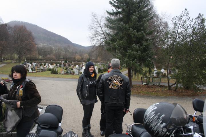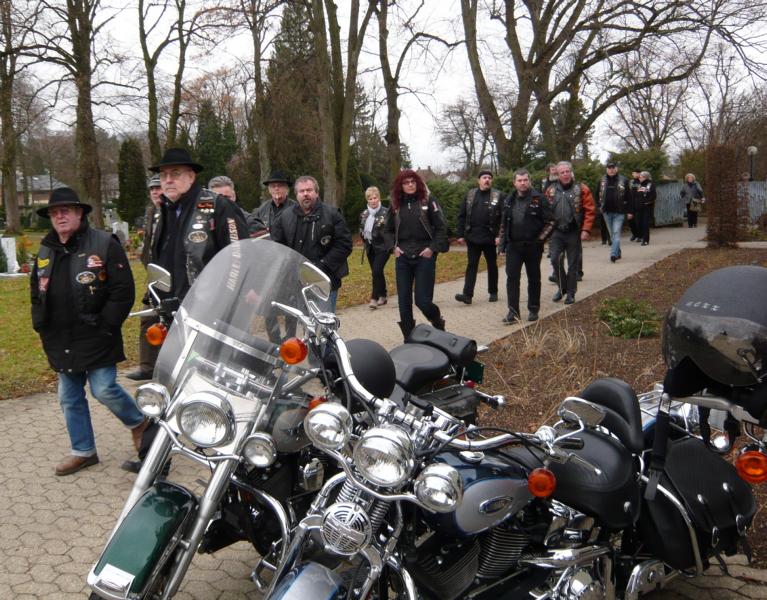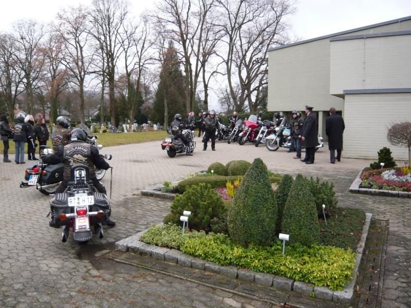 Seine Tochter Melanie Knies geb. Jäger, mit der er wohl kurz vor seinem Tode auch über zeremonielle Abläufe der Trauerfeier gesprochen musste, nannte mir einen geplanten Beisetzungstermin, als den Donnerstag, 10.01.13 um 14.00h. Danach haben wir noch zweimal zusammen telefoniert. Beim letzten Gespräch bat sie mich, dass wir wohl früher zum Friedhof kommen sollten, um die Bikes vor der Aussegnungshalle zu platzieren? Hinterher wusste ich nicht, ob ich das falsch verstanden hätte "in den Friedhof einfahren"?