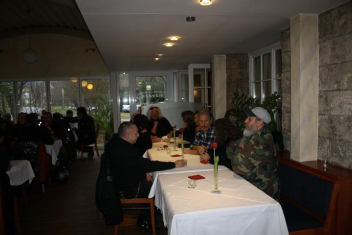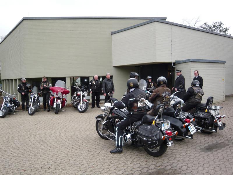 Ich versuchte ihnen ihre Bedenken zu nehmen und sagte, dass ich mit 10 bis max. 15 Bikes rechnen würde und etwa 30 – 35 Member, die größtenteils bei den Witterungsverhältnissen wohl mit dem Auto kommen würden. Trotzdem hatte die Verkehrsstaffel Pfullingen auch einen Streifenwagen für uns abgestellt und eben dieses neutrale Fahrzeug der KRIPO. Ich wusste garnicht, dass wir solch gefährliche Rocker sind? Ich erklärte den Beiden, dass wir doch die Guten unter den Bösen sind!!