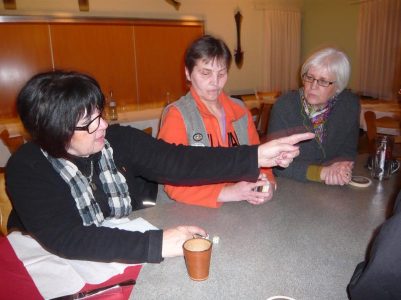 Früher fand am Mutscheltag ein Preisschießen statt, bei dem die besten Schützen Mutscheln gewannen. Heute wird um die Mutscheln gewürfelt. Wie immer, war alles gut vorbereitet und die Mutscheln waren zu Beginn gut verpackt und warteten auf die Gewinner. Gudrun teile Zettel mit einer Nummer zwischen 1 und 3 aus, wobei jede Nummer eine Gruppe kennzeichnete. Jeder begab sich zu seiner Gruppe und los gings.