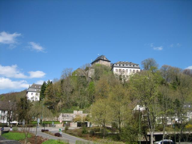 Doch starten wir erst einmal in Linz am Rheinufer und setzen mit der Rheinfähre Linz-Remagen auf die linke Rheinseite über. Als erstes erreichen wir in Bad Neuenahr die Produktionsstätten des „Queen of Tablewater“ die Apollinaris Quelle. Von hier aus geht dieses Mineralwasser in die ganze Welt. Vorbei an den alten Stadttoren von Ahrweiler und den an die bzw. in die alte Stadtmauer gebauten Wohnhäusern, der Abfahrt zu dem ehemaligen Regierungsbunker der „Bonner Republik“, dem alten Gasthaus St. Peter und der Felsformation der „Bunten Kuh“ mit dem dazu gehörenden Gasthaus, geht es entlang der Weinberge und der Ahr vorbei an den Viadukten von Altenahr, vorbei an einem Oldtimer Traktorentreffen (siehe Bilder) und einer historischen Getreidemühle weiter Richtung Blankenheim. Hier thront die Burg über der Stadt und dominiert das Landschaftsbild.