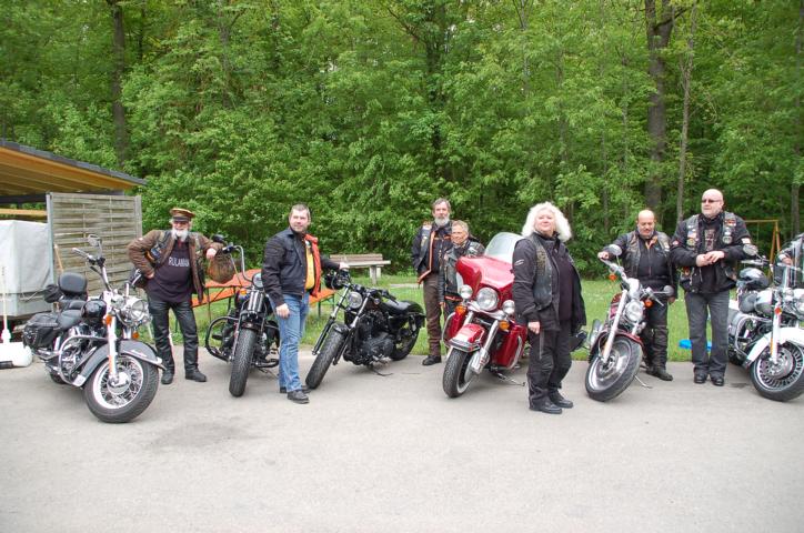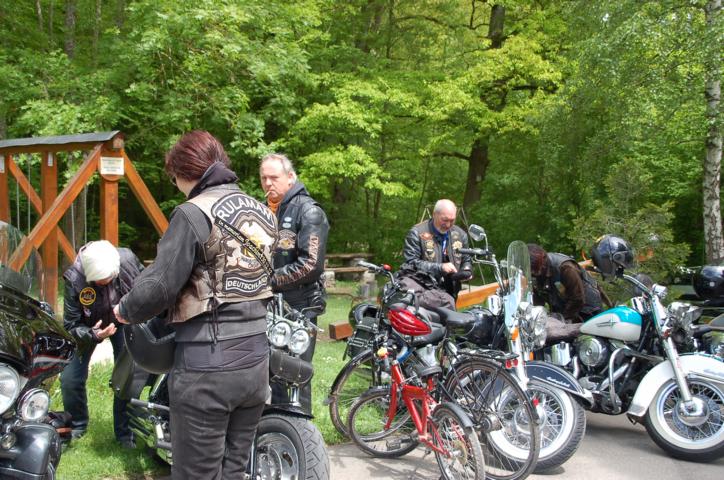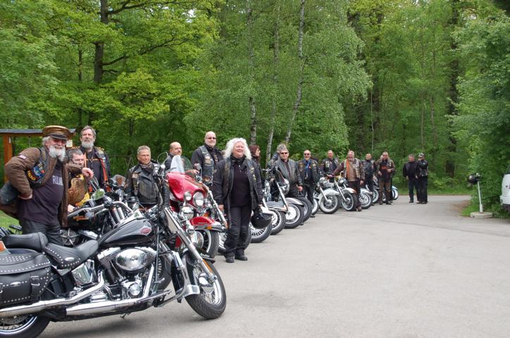 Nach einer kurzen offiziellen Begrüssung und ein paar erklärenden Sätzen von RC Frank nahm die Gruppe mit knapp 30 Leuten den Asphalt unter die Räder – endlich einmal eine schöne Tour, eine grosse Gruppe und alle hatten gute Laune. RC Frank führte die Strecke souverän bis zum ersten Zielpunkt, dem HD-Dealer Ricks in Baden Baden. Nachdem sich die Biker mit den neuesten notwendigsten Accessoires eingedeckt hatten fuhr die Gruppe in das nahegelegene Gartenrestaurant Looping. Leider hat sich dort der gesamte Ablauf etwas verzögert und so kamen wir erst wieder mit fast einer Stunde nach dem Zeitplan auf die Strecke.