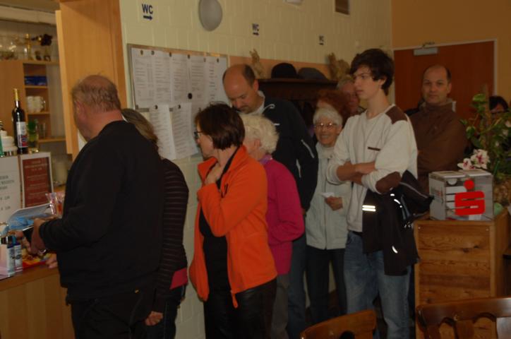 Während des Essen regenete es auch – wie am Schnürchen. Und nachdem alle sich mehr oder weniger in Plastik verpackt wieder in den Sattel wagten, hatte der Regen auch schon wieder aufgehört. Auf der Rückfahrt machten wir noch eine ausgiebige Kaffeepause im Meilenwerk. Auf den letzten Kilometern fielen noch vereinzelt Tropfen. Die tolle Stimmung des ganzen Tages feierten wir noch beim gemeinsamen Abendessen im Adler bis die Wirtsleute uns sagten, wo die Lichtschalter sind! Ein Supertag!
