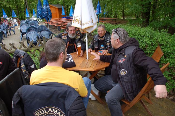 Der Montag versprach wieder bessere Voraussetzungen und so war es richtig geil, dass über 30 Biker an der Shell-Tanke schon wieder mit den Hufen scharrten um in der stattlichen Gruppe dem gemeinsamen Hobby zu fröhnen. Kurz nach 10.30h folgten wieder alle sehr diszipliniert unserem HRC Dieter auf die Sprudelstrasse. Wer die nicht kennt, ist selber schuld, wäre er eben mitgefahren. Wunderschöne Strecke, obergutes Wetter und im Naturfreundehaus in was weiß ich wo, obergutes Essen. Alle waren zufrieden – hoffe ich, ich habe jedenfalls nichts anderes gehört.
