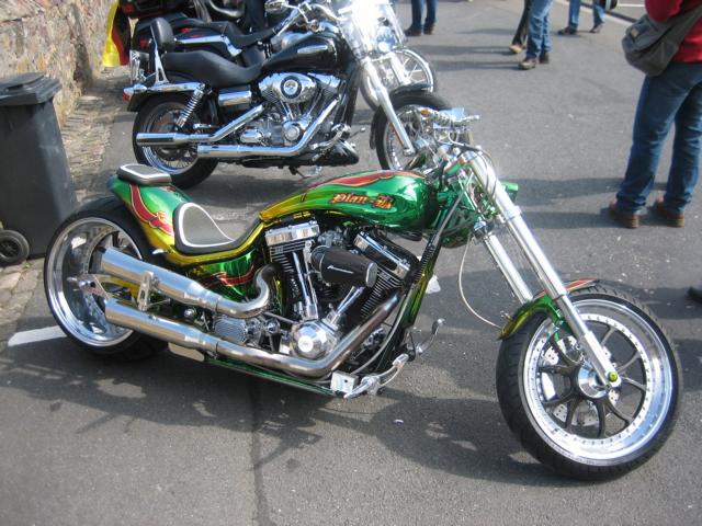 In der Nacht setzte dann der angekündigte Starkregen der Marke Stundenlang ein. So das es unmöglich war etwas zu unternehmen, und man beschloss diesen Tag, wenn auch in gebremster Form so fort zu setzten wie der Donnerstag geendet hatte, also in Benzingesprächen. In einer Regenpause hat Rainer Schwarz dann doch noch am späten Nachmittag für das wartende Publikum seine Harley Davidson Stuntshow auf der gesperrten Rheinstraße durchführen können, bevor wieder der Regen einsetzte.