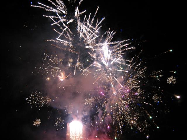Die Parade konnte am Samstagnachmittag trocken von den Teilnehmern vollzogen werden. Am Abend kam dann der Höhepunkt, ein Musikfeuerwerk, welches wieder anders war und das vom letzten Jahr an Kreativität übertraf. Ein Gitarrist spielte unterhalb der Brömserburg im Weinberg, live zu Beginn in Jimmy Hendrix Manier die Deutsche und die Amerikanische Nationalhymne sowie das Lied…warum ist es am Rhein so schön…als Eröffnung, bevor mit dem Lied der Toten Hosen ..An Tagen wie diesen … und Musik von Meat Loaf das ca. zwanzigminütige Feuerwerk vom Burgfried der Brömser Burg einsetzte. Hierzu kann man nur noch Anmerken „Gigantisch“. Das es den Feuerwerkern trotz enormer Anstrengungen (siehe Bilder) wie jedes Jahr nicht gelungen ist, den Burgfried zu sprengen ist lediglich von statistischer Bedeutung und findet damit seine Hinfortführung der „vergeblichen Versuche“ der letzten 11 Jahre.