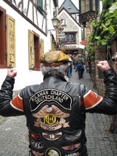 Auf dem Eventgelände war wie in der Vergangenheit alles zum Besten gerichtet. Harley Davidson Niederlassungen aus Wiesbaden und Frankfurt waren mit ihrem Stand ebenso vor Ort, wie eine Vielzahl von freien Ausrüstern für Mensch und Maschine inkl. dem nunmehr schon 82 Jahren alten „Schaltstangen Alfons“ (der immer noch seine Road King souverän über die Straßen führt), sowie die Abteilung „Versorgung Fest und/oder Flüssig“ waren vom Spanferkel bis zur Currywurst, Kaffee- sowie Bierbuden, Sekt- und Weinständen, JD Stand und die „berühmt berüchtigten“ Erdbeerbowlen Stände in ausreichender Zahl vor Ort. Die Rüdesheimer Gastronomie hatte sich ebenfalls, wie immer, auf uns Harley Fahrer eingestellt.