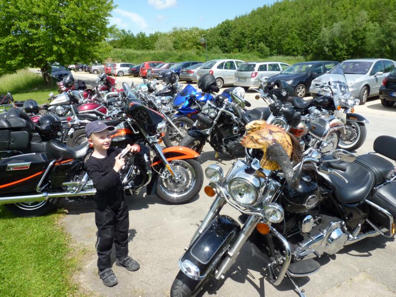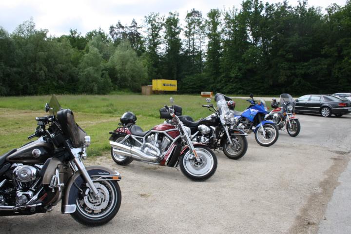 Wir versuchten, das Wetter einfach zu ignorieren! Am Sonntag früh um 7, hörte ich schon was da der Himmel fallen ließ. Um 8 ein zaghafter Gang zur Garage – es wurde trocken und als ich um halb neun die Heritage aus der Garage fuhr, stand der Entschluss fest: heut wird es nicht regnen und es wird warm und ich fahre kurzärmelig und es ist Sommer.