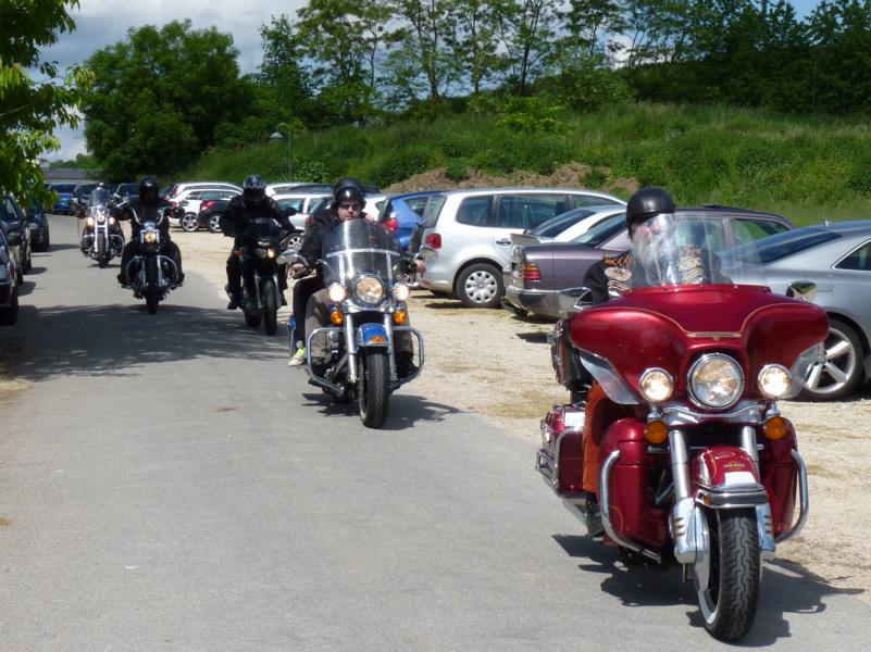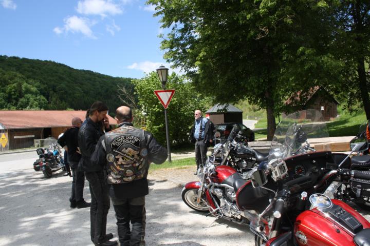 Wir hatten den ganzen Tag allerbestes Bikerwetter! Blauer Himmel, leichte Quellwolken ab u zu, super Temperaturen – genau goldrichtig um Motorrad zu fahren! Wenig Verkehr, tolle Streckenverläufe, gute Stimmung, original – ride an have fun – dem von Harley ausgegebenen Motto für solche Chapterveranstaltungen.