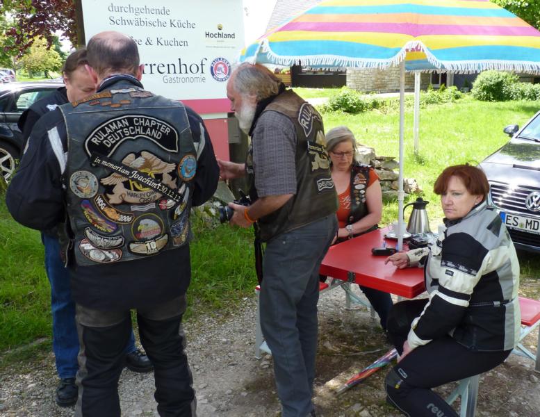 Nachdem die Regularien erledigt waren fuhren die Ersten schon mal los. Wir, die Reporter des GEA und eine handvoll Member fuhren unter T-Bones Führung Richtung schwäbische Alb. An der ersten „Karten-zieh-Stelle“ erwartete uns zu unserer Freude auch ein ehemaliges Rulaman Mitglied, Thomas Gössele, der es sich nicht nehmen ließ, den Streckenposten für uns zu machen. Die Wiedersehensfreude war auf allen Seiten groß und ich habe Thomas gebeten, doch noch zum Abschluss nach Rübgarten zu kommen. Was er versprach – und hielt!