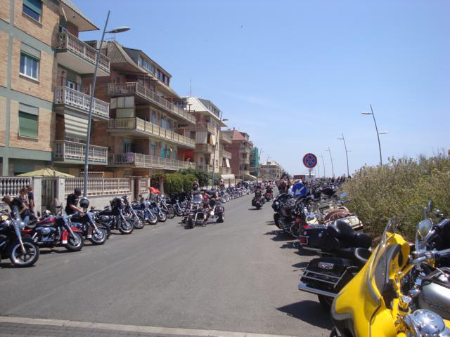 Dieter und Helga, die mit dem Wohnmobil inklusive Mopped angereist waren, nahmen am Samstag an der Parade teil. Aufstellung ab 06:30 - Abfahrt 08:30. Da hielt sich mein Eifer mitzufahren in Grenzen, zumal ich erst von Rom nach Ostia fahren musste. Also einen schönen Tag am Strand eingelegt nachmittags über das Eventgelände geschlendert und abends mit den anderen Rulas den Bands auf dem Eventgelände zugehört. Da das Eventgelände für alle offen war, strömten am Samstag Abend auch alle Bewohner von Ostia und Umgebung auf das Gelände, um alles hautnah mitzuerleben. Ein unglaubliches Verkehrschaos war die Folge.