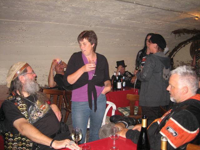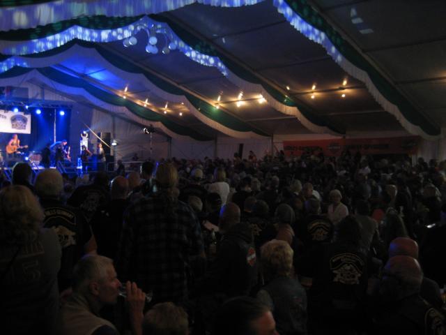 Am Samstagabend erfolgte der Einzug der Ürziger Weinkönigin und den Weinprinzessinnen, auf Harley Davidson Motorrädern in das bis auf den letzten Platz besetzten Festzelt und einem überfüllten Festplatz, auf die Festbühne. Der Director Horst Rose vom Rhein-Ruhr Chapter hatte aus Anlass des Jubiläums seines Chapters, für den Verfasser eine Überraschung parat, in dem er diesem den Anniversary Pin überreichte. Der ist so groß und schwer, dass ein schmächtiger Harley Fahrer „Haltungsschäden“ befürchten muss. Nein, ernsthaft, dieser Pin ist wunderschön und etwas besonderes. Nach der Begrüßung durch den Bürgermeister Simon, wie in den letzten Jahren immer korrekt mit einer Lederkutte bekleidet, übernahm dann die bereits bekannte Band „Second Spring“ das Vorprogramm, bevor erstmalig um 22.00 Uhr Gitti Fischer den musikalischen Part übernahm und im bzw. vor dem Zelt alle zum „mit rocken bzw. teilweise mitsingen“ animierte und begeisterte. In einer Pause wurde dann das Aufwiegen eines Teilnehmers in Wein aus dem Ürziger Würzgarten durchgeführt. Wir hatten bis zur Verlosung alle den festen Glauben, das man es in diesem Jahre sein könnte, nachdem aber insgesamt 6 Lose durch die Weinkönigin gezogen werden mussten, stellte man fest, das dies bedauerlicherweise nicht die eigenen Nummern waren, sondern Los Nummer 314 gewann. Um über diesen „Schmerz“ hinwegzukommen, wurden dann noch weitere „Weinproben genommen“ und der musikalischen Unterhaltung von „Second Spring“ gelauscht. Dann kam, eigentlich nicht angekündigt, um kurz vor 00.00 Uhr Gitti Fischer, offenbar selbst überwältigt von dem was sie beim ersten Auftritt des Abends erlebt hatte, erneut auf die Bühne bzw. sang ihr Songs zwischen den Gästen auf den Tischen und Bänken, teilweise wieder allein, bei dem ein oder anderen Lied, was einen an die eigene „Rockvergangenheit“ erinnerte, mit musikalischer Begleitung des Sängers bzw. der Musiker von „Second Spring“. Das Publikum war begeistert und so gab es auch noch ein paar Zugaben, bevor alle dann die Bühne verließen.