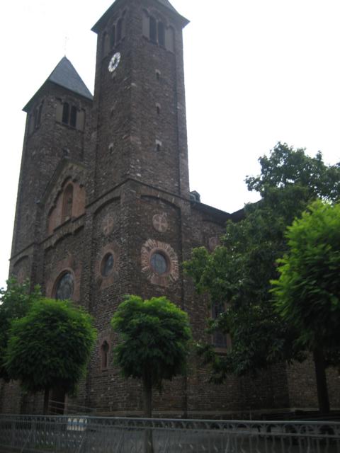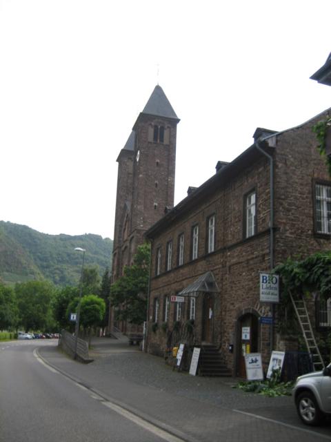 Auf der Höhe von Ellenz befindet sich auf den ersten Blick eine sehr imposante aus Bruchstein gebaute Kirche mit zwei hohen Glockentürmen und einem prachtvollen dazwischen liegenden Eingangsportal, der zweite Blick offenbart dann aber, dass es dahinter nur mit einem Chor ohne Langschiff bzw. Mittel- oder Seitenteil zu Ende geht. Man erzählt sich hier immer, dass die finanziellen Mittel während des Baues zu Neige gegangen seien.