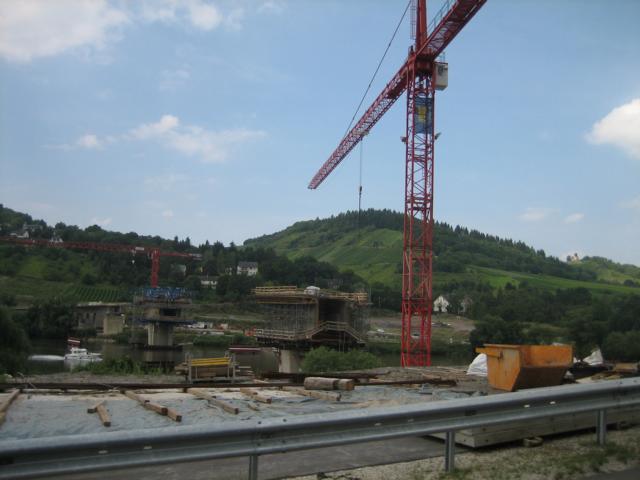 Die neue Moselbrücke hinter Kröv befindet sich weiterhin im Bau, aber die kompletten Brückenpfeiler in der Mosel, als auch die Auflieger, sind bereits fertiggestellt.