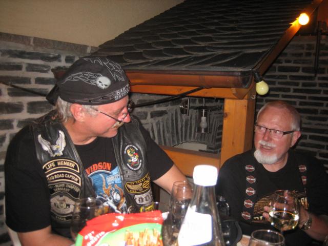 Harley & Wein in Ürzig ist immer wieder eine Teilnahme wert; wobei man nicht unerwähnt lassen kann, dass die Infrastruktur des Ortes an seine Grenzen kommt. Selbst in den umliegenden, weiter entfernten Ortschaften, residieren inzwischen die Harleyfahrer um an der Veranstaltung teilnehmen zu können. Wir, die wir im Weinbaubetrieb Anja und Gerd Oster Quartier beziehen, haben alle wieder unsere Zimmer für die 17. Harley & Wein vom 07. - 09. August 2015 fest gebucht.