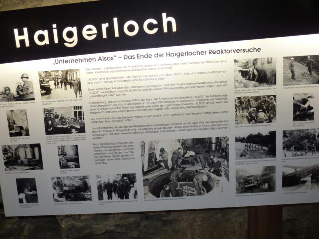 Auf Grund der alliierten Luftangriffe 1944 auf Berlin floh eine Forschergruppe nach Haigerloch in die Provinz und baute dort, getarnt in einem ehemaligen Bierkeller einen Forschungsreaktor auf, um im Wettlauf gegen die Amerikaner ungestört arbeiten zu können. Dieser wurde 1980 zum Museum ausgebaut.