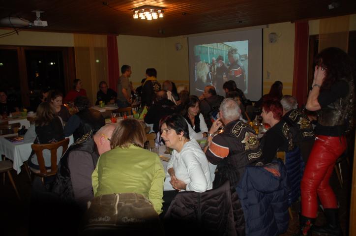Nach dem vorzüglichen Essen spielte dann die Musi - unser italienischer Pächter aus dem früheren Fischerheim stand an der Orgel. Bei guter Hintergrundmusik konnte man sich über die noch fälligen Updates für das Mopped austauschen und die vergangen Jahre in Form einer Diashow Revue passieren lassen. Dieses Themas hatte sich T-Bone angenommen und er hatte seinen Job wirlich gut gemacht. Zum Schluss ließen es sich einige Member nicht nehmen, noch das Tanzbein zu schwingen.