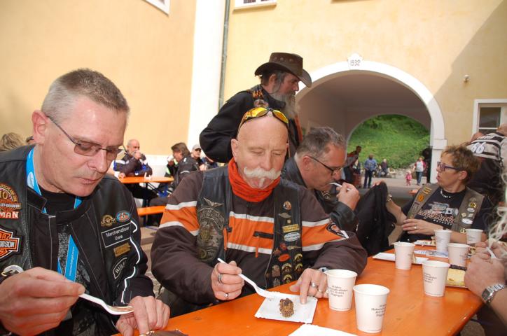 Gedreht wurden Fahrszenen und Intakes für einen Bericht der Sendung Landesschau mobil „im Dritten“, und Head Road Captain Dieter sorgte für großes Kino. Knapp über 20 donnernde Harleys im Rücken folgten ihm quer durch das abwechslungsreiche Biosphärengebiet der Bad Uracher Alb. Sattgrüne Täler, panoramareiche Hochflächen und kurvenreiche Downhills boten der filmenden Crew eine tolle Kulisse.