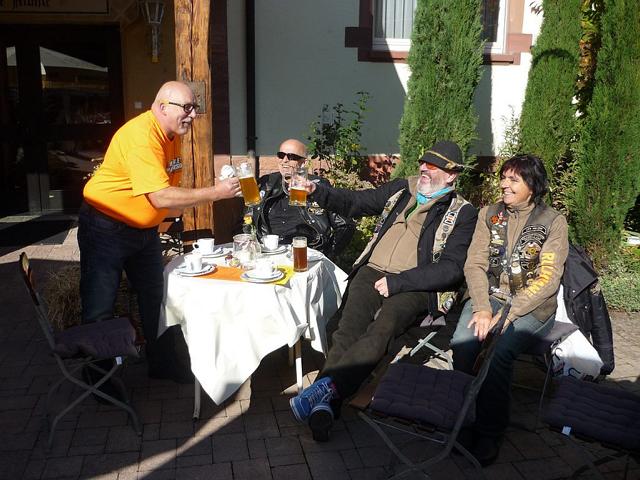 Die 2,5 Stunden-Fahrt, mit Rulaman-Wetter (Nebel, kalten Temperaturen, Sprühnebel und nasser Fahrbahn), führte uns über Freudenstadt, Kniebis, Petersthal-Griesbach, Biberach nach Lahr-Sulz in die dortige Dammenmühle. Eine sehr feine, adäquate Location, die auch als Veriensheim des Baden-Chapters dient.