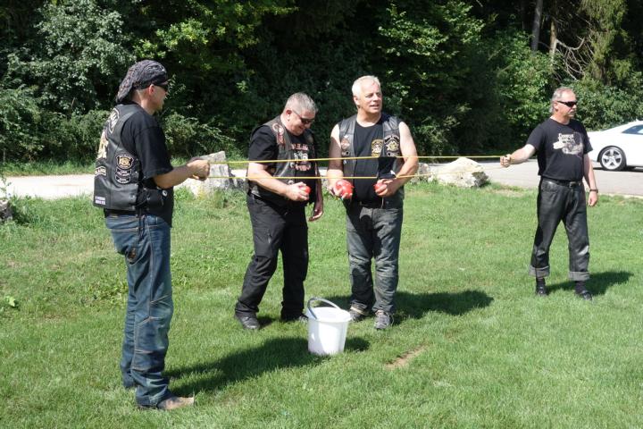 Ziel ist es, die gegnerische Partei mit den Wasserbomben, d.h. mit Wasser gefüllten Luftballons richtig nass zu machen. Nach anfänglichen Treffern, die irgendwo im Wald und auf der Wiese landeten, kamen die Einschläge näher. Irgendwann schaffte es das Herz Ass Chapter einen Treffer zu landen und somit das Duell für sich zu entscheiden.