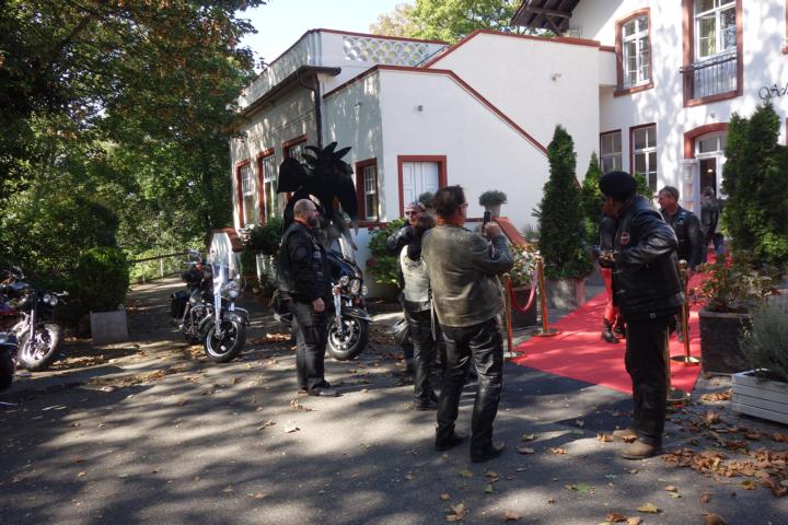 In Heidelberg angekommen, machten wir uns auf die Suche nach dem Restaurant, bei dem Burghardt das Mittagessen organisiert hatte. Nach kurzer Diskussion mit einem Ordner, der uns nicht auf die Zufahrtsstraße zum Schloss lassen wollte von dem aus wir das Restaurant erreichen konnten, fuhren wir am Heidelberger Schloss vorbei zum Schlosshotel Molkenkur. Dort lag schon der rote Teppich ausgerollt – wahrscheinlich nur für uns.